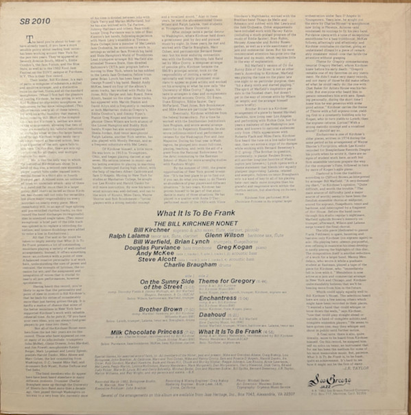 Bill Kirchner Nonet – What It Is To Be Frank