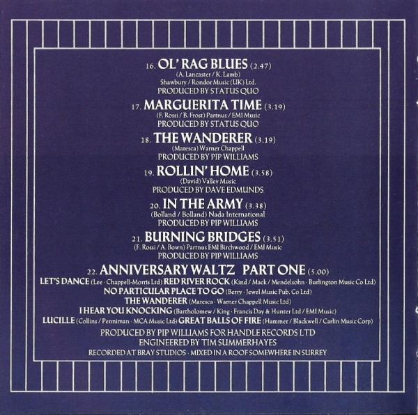 Written-By – John Coghlan Written-By – Bob Young Written-By – Rick Parfitt Written-By – Francis Rossi Written-By – Alan Lancaster |