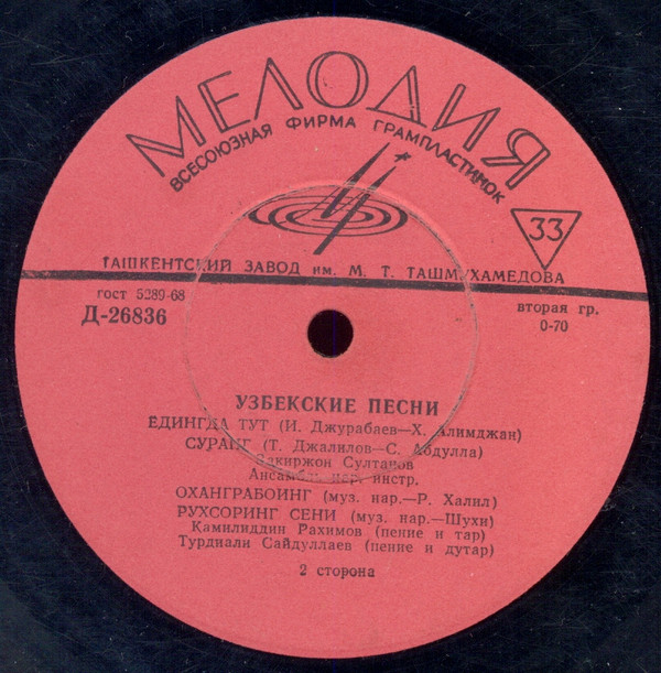 - Manufactured By – Ташкентский Завод Грампластинок им. М. Т. Ташмухамедова
