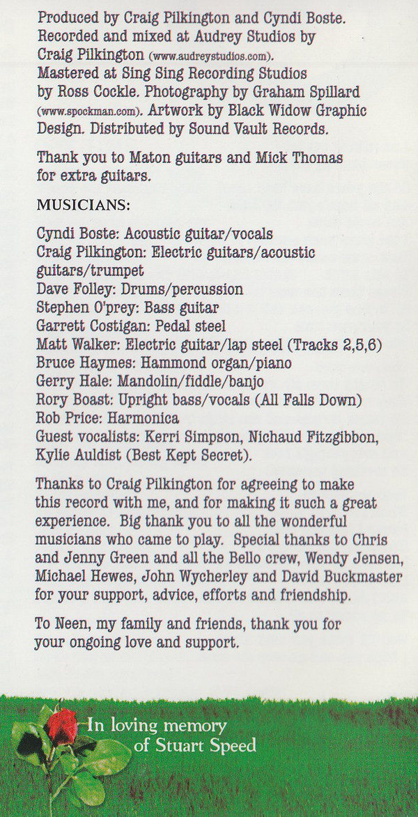 - Acoustic Guitar, Vocals – Cyndi Boste