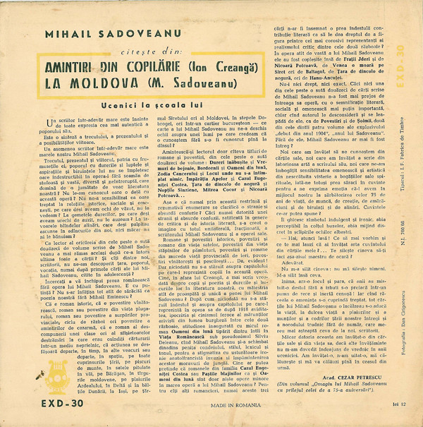 Mihail Sadoveanu Citește Din : Amintiri Din Copilărie / La Moldova - 25341475 Mihail Sadoveanu Citește Din : Amintiri Din Copilărie / La Moldova