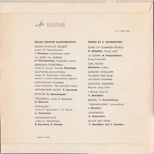 Песни Е. Жарковского = Songs By E. Zharkovsky