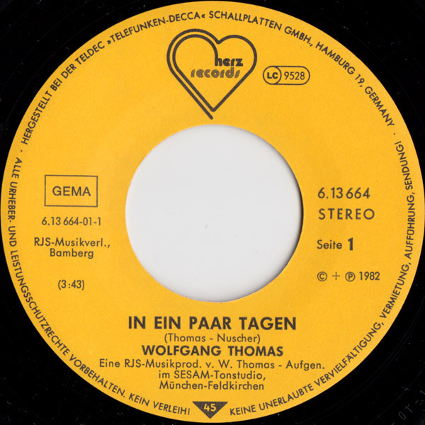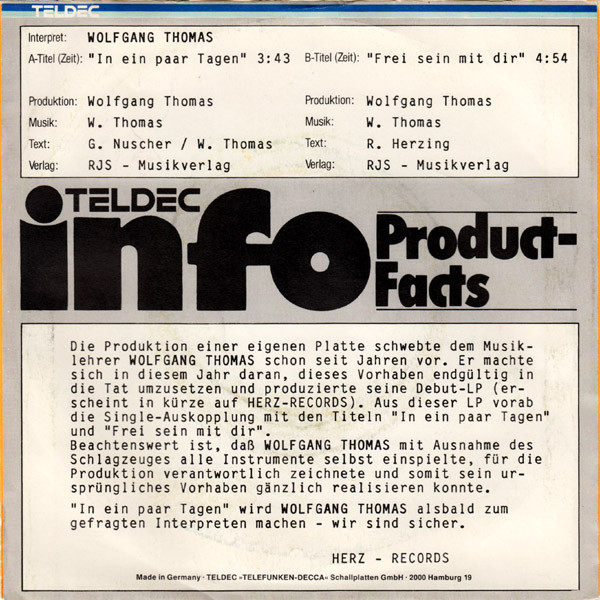 Wolfgang Thomas (4) – In Ein Paar Tagen / Frei Sein Mit Dir