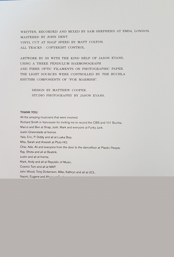 Bass – Susumu Mukai Cello – Joe Zeitlin Drums – Leo Taylor Electric Piano [Fender Rhodes], Synthesizer [Buchla 200e] – Sam Shepherd Guitar – Alex Reeve Viola – Matt Kettle (2) Violin – Qian Wu Violin – Edward Brenton |
