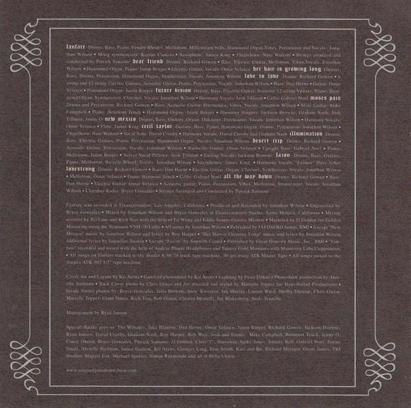 Arranged By [Strings], Conductor [Strings] – Pat Sansone Drums, Bass, Piano, Electric Piano [Fender Rhodes], Mellotron, Bells [Millennium], Organ [Hammond], Vibraphone, Percussion, Vocals, Songwriter – Jonathan Wilson Flugelhorn – Nate Walcott Saxophone – James King Synthesizer [Moog] – Keefus Ciancia |