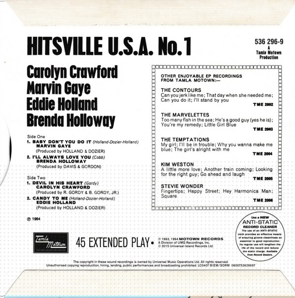 - Other Catalog No., Hitsville U.S.A. No.1.: 536 296-9