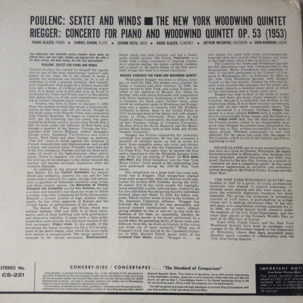 Francis Poulenc – Sextet For Piano And Woodwind Quintet - Concerto For Piano And Woodwind Quintet, Opus 53