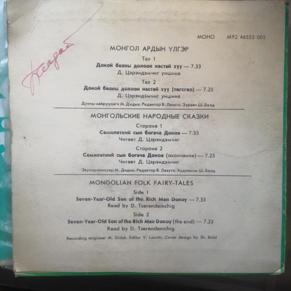 | Лейбл: | Монгол Аялгуу – М92 46553 005 |