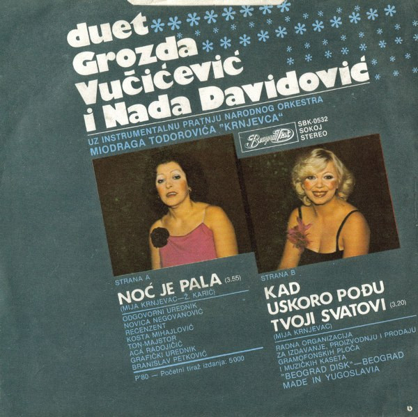 - Vocals – Grozda Vučićević I Nada Davidović