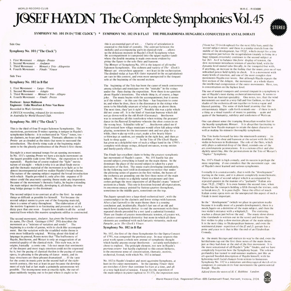 Joseph Haydn – The Complete Symphonies Vol. 45 (Symphony No. 101 In D "The Clock"; Symphony No. 102 In B Flat)