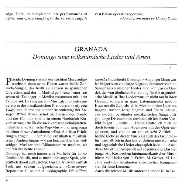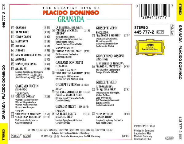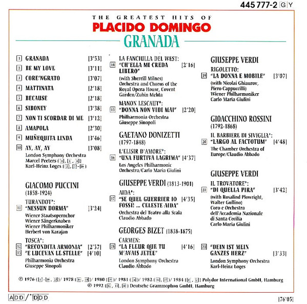 Placido Domingo – Granada - The Greatest Hits Of Placido Domingo
