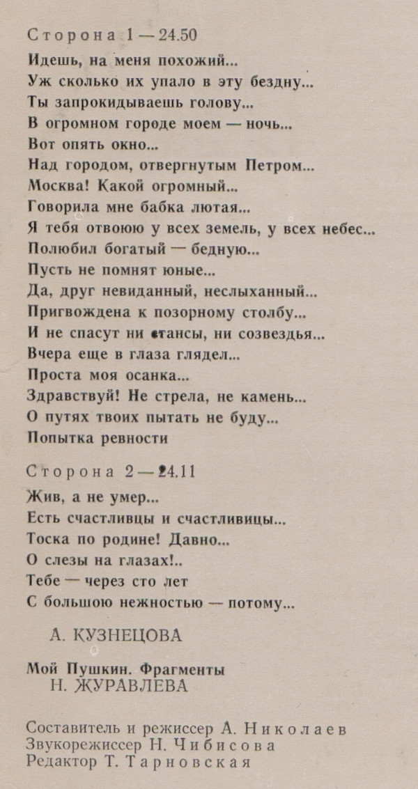 | B7 | Мой Пушкин (Фрагменты) |