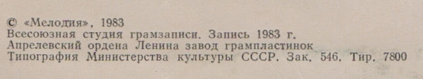 - Printed By – Типография Министерства Культуры СССР