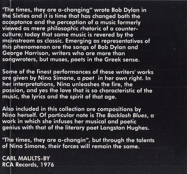 Nina Simone – Songs Of The Poets: Dylan, Harrison And Simone