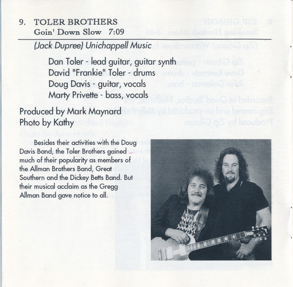 The Toler Brothers Bass, Vocals – Marty Privette Drums – David "Frankie" Toler Guitar, Vocals – Doug Davis (11) Lead Guitar, Guitar Synthesizer – Dan Toler Producer [Produced By] – Mark Maynard (2) Written-By – Champion Jack Dupree |