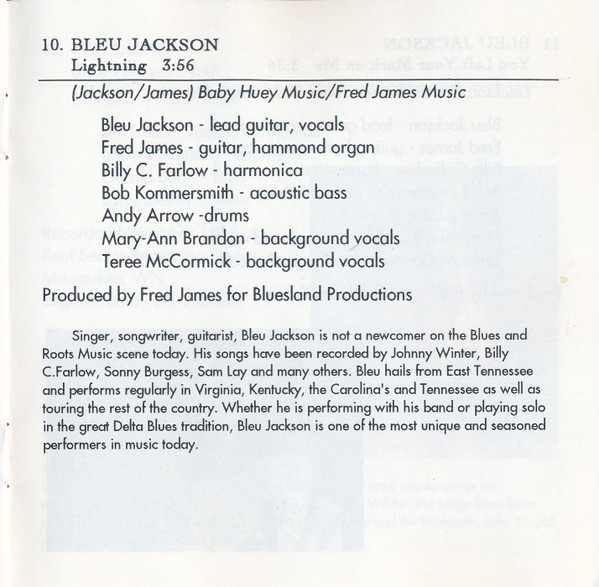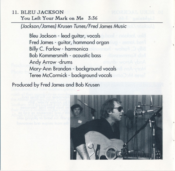 Bleu Jackson Acoustic Bass – Bob Kommersmith Backing Vocals – Mary-Ann Brandon Backing Vocals – Teree McCormick Drums – Andy Arrow Guitar, Electric Organ [Hammond Organ] – Fred James Harmonica – Billy C. Farlow Lead Guitar, Vocals – Bleu Jackson Producer [Produced By] – Fred James Written-By – Bleu Jackson Written-By – Fred James |