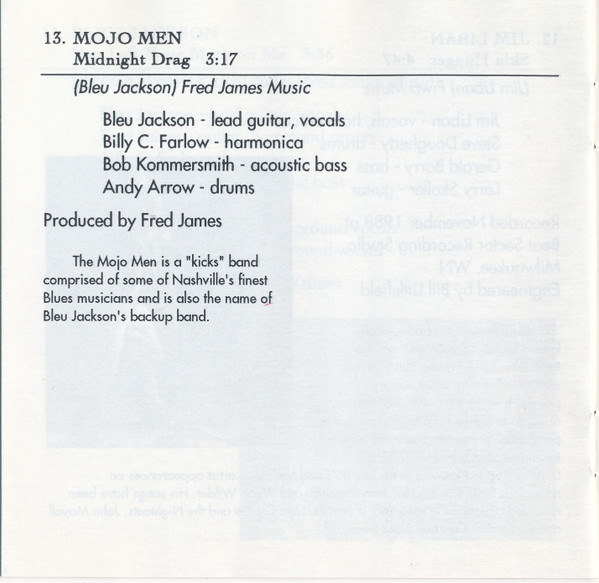 mojo men Acoustic Bass – Bob Kommersmith Drums – Andy Arrow Harmonica – Billy C. Farlow Lead Guitar, Vocals – Bleu Jackson Producer [Produced By] – Fred James Written-By – Bleu Jackson |