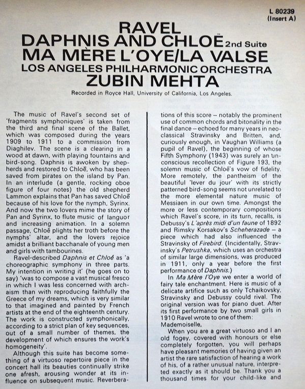 Zubin Mehta – Ravel: Daphnis And Chloë 2nd Suite / La Valse / Ma Mère L'Oye