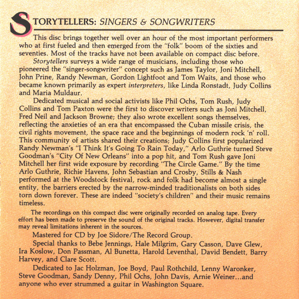Various – Storytellers: Singers And Songwriters