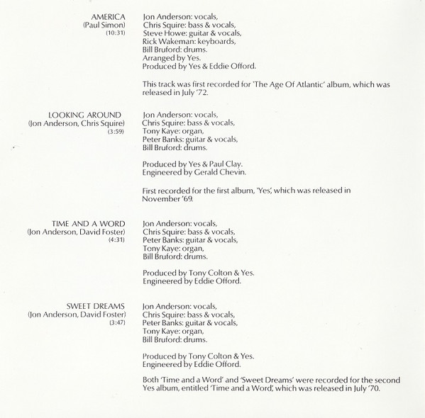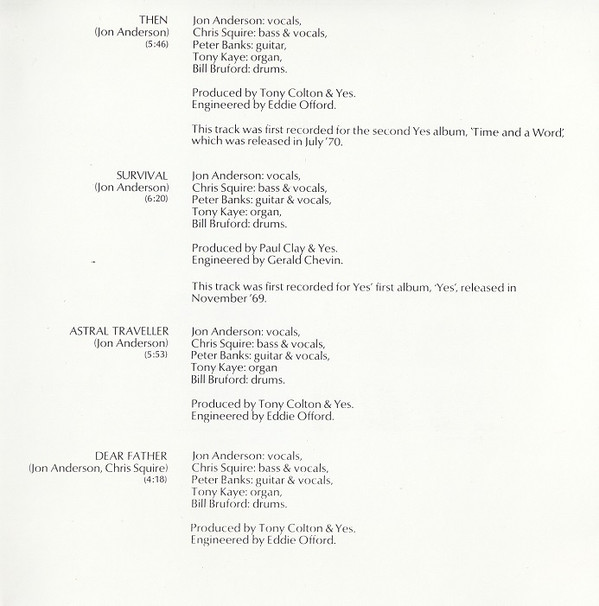 - Bass, Vocals – Chris Squire