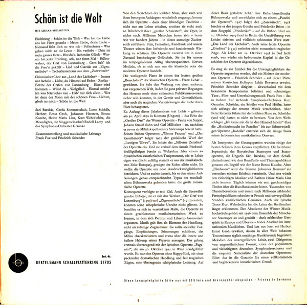 Various – Schön Ist Die Welt, Mit Lehár Melodien