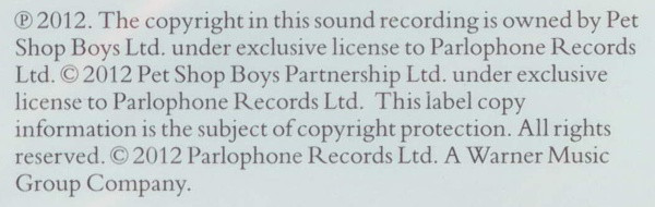 - Phonographic Copyright (p) – Pet Shop Boys Partnership Ltd.