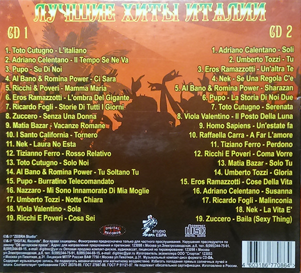 - Matrix / Runout CD2: MUSIC COLLECTION Сборник - Лучшие Хиты Италии CD2 Zебра studio