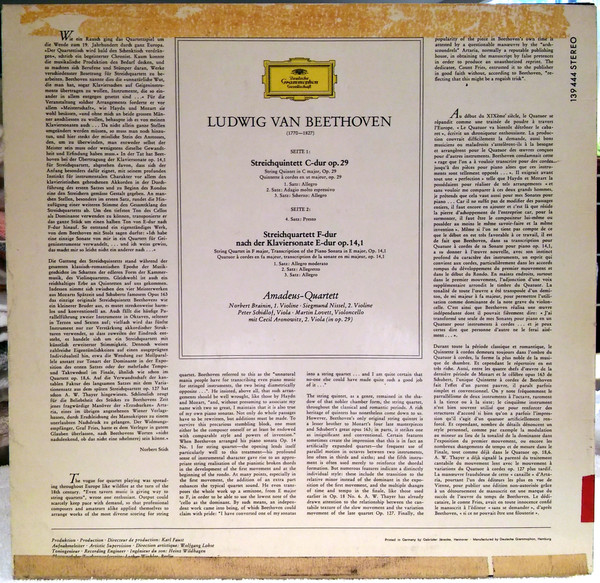 Ludwig van Beethoven – Streichquintett Op.29 Streichquartett F-Dur Nach Der Klaviersonate Op.14,1