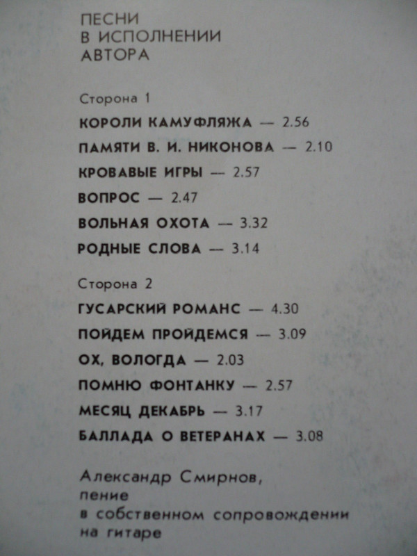 - Written-By, Vocals, Guitar – Александр Смирнов (9)
