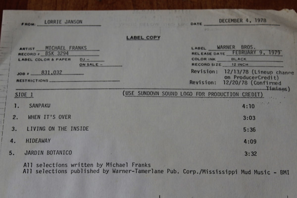 Лейбл: Warner Bros. Records – BSK 3294