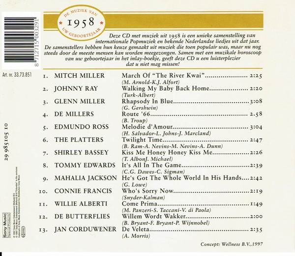 Various – De Muziek Van Uw Geboortejaar 1958