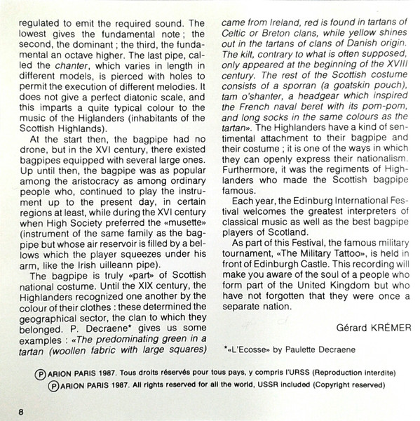 Gérard Krémer – La Cornemuse Écossaise et "The Edinburgh Military Tattoo"