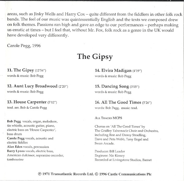 - Vocals, Fiddle – Carole Pegg