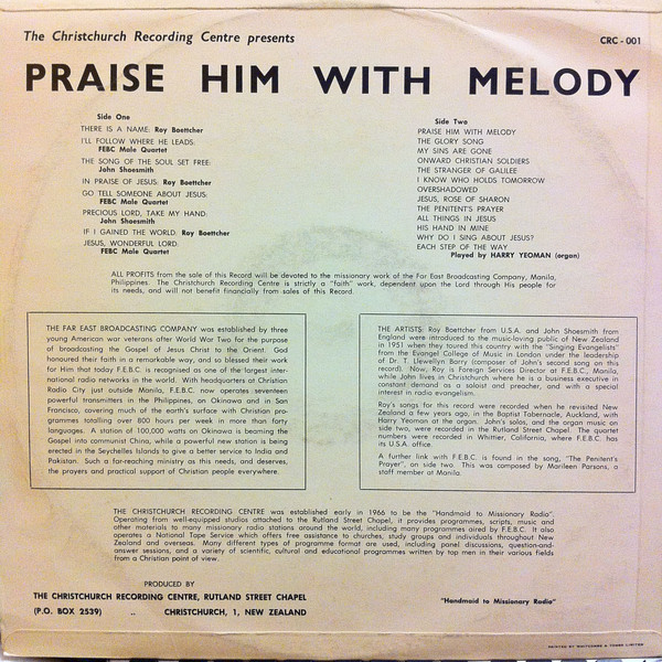 | Лейбл: | Christchurch Recording Centre – CRC-001 |