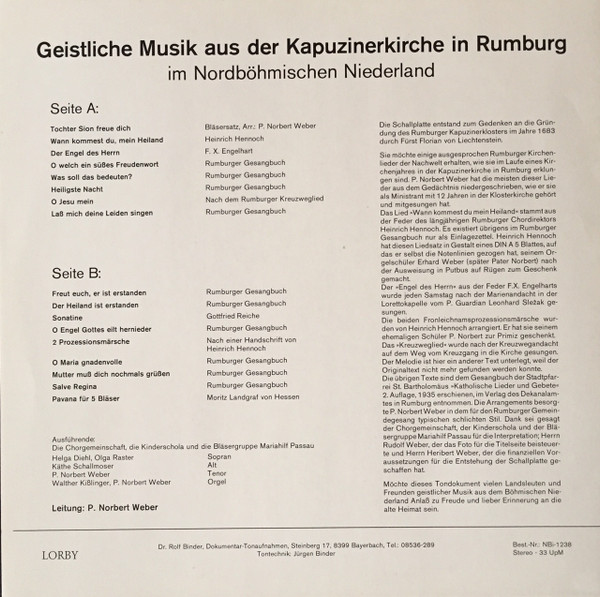 Various – Geistliche Musik Aus Der Kapuzinerkirche In Rumburg