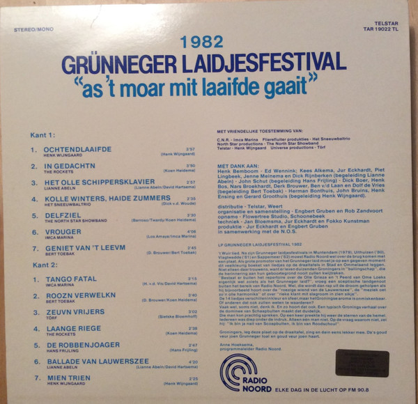 Various – Grunneger Laidjesfestival 1982 "As 'T Moar Mit Laaifde Gaait"
