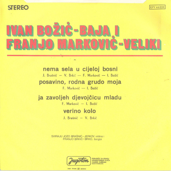 Written-By – Vojislav Brkić Written-By – Jozo Brašnić Written-By – Franjo Marković (2) Written-By – Ivan Božić (2) |