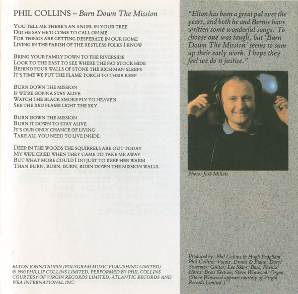 Phil Collins The Serious Band Bass – Leland Sklar Brass – The Phenix Horns Guitar – Daryl Stuermer Organ – Steve Winwood Producer – Hugh Padgham Producer – Phil Collins Vocals, Drums, Piano – Phil Collins |