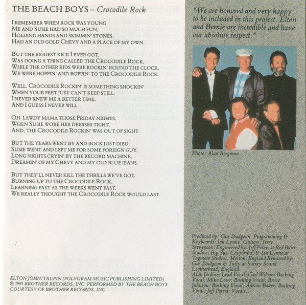 The Beach Boys Backing Vocals – Mike Love Backing Vocals – Bruce Johnson Backing Vocals – Adrian Baker Backing Vocals – Carl Wilson Engineer – Jeff Peters Guitar – Jerry Stevenson Lead Vocals – Alan Jardine Producer – Gus Dudgeon Programmed By, Keyboards, Engineer – Ian Lynn Remix – Tufty Remix – Gus Dudgeon Vocals – Jeff Peters |