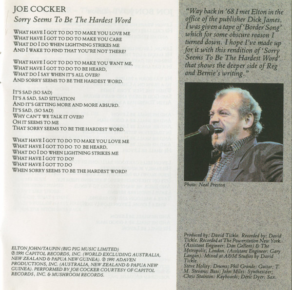 - Photography [Joe Cocker] – Neal Preston