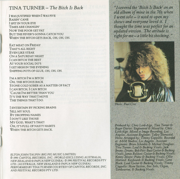 - Photography [Tina Turner] – Paul Cox