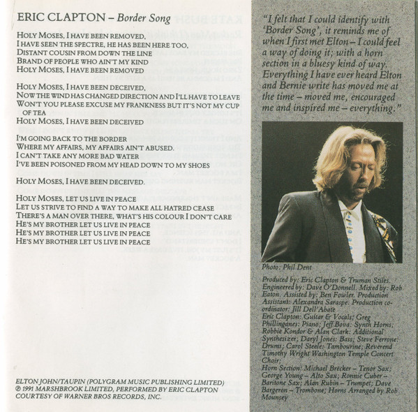 Eric Clapton Arranged By [Horns] – Rob Mounsey Bass – Darryl Jones Choir – The Reverend Timothy Wright Concert Choir Drums – Steve Ferrone Engineer – Dave O'Donnell Mixed By – Rob Eaton Mixed By [Assistant] – Ben Fowler Other [Producer Assistant] – Неизвестный #0 Other [Production Co-ordinator] – Jill Dell'Abate Piano – Greg Phillinganes Producer – Truman Stiles Producer – Eric Clapton Saxophone [Alto] – George Young (2) Saxophone [Baritone] – Ronnie Cuber Saxophone [Tenor] – Michael Brecker Synthesizer [Additional] – Alan Clark Synthesizer [Additional] – Robbie Kondor Synthesizer [Synth Horns] – Jeff Bova Tambourine – Carol Steele Trombone – Dave Bargeron Trumpet – Alan Rubin Vocals, Guitar – Eric Clapton |