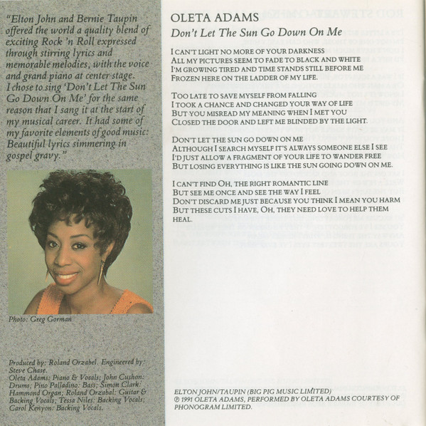 - Photography [Oleta Adams, Bruce Hornsby] – Greg Gorman