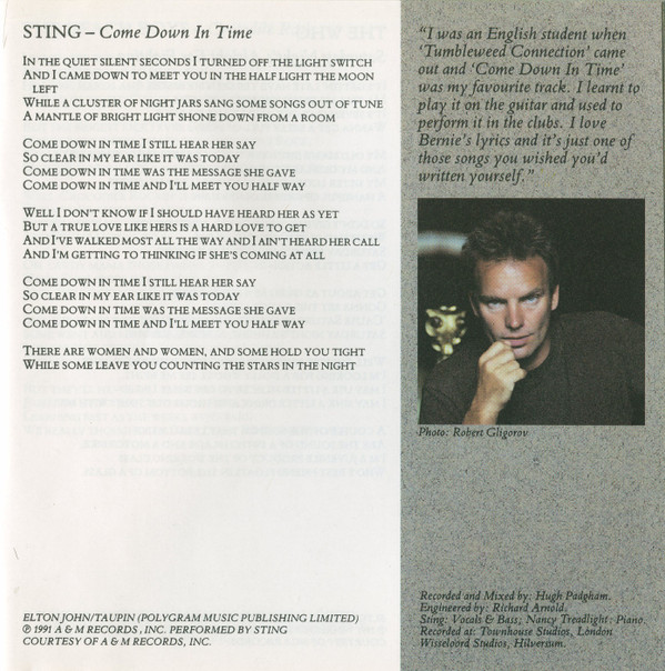 Sting Engineer – Richard Arnold Piano – Nancy Treadlight Recorded By, Mixed By – Hugh Padgham Vocals, Bass – Sting |