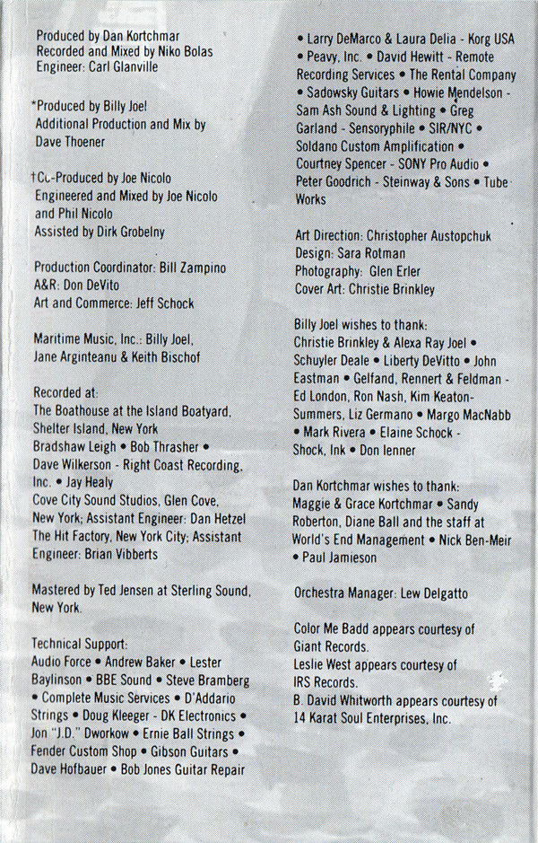 Arranged By [Background Vocals] – Crystal Taliefero Bass – T.M. Stevens Choir – Corliss Stafford Choir – Phillip Ballou Choir – Katreese Barnes Choir – Stephanie James Choir – Marlon Saunders Choir – Frank Floyd Choir – Dennis Collins Choir – Diane Garisto Choir – Brenda White King Choir – Devora Johnson Choir – Will Downing Conductor [Choir], Contractor [Choir] – Curtis King Drums – Zachary Alford Guitar – Tommy Byrnes Guitar – Danny Kortchmar Orchestrated By – Ira Newborn Vocals – Wrecia Ford Vocals – Marlon Saunders Vocals – Crystal Taliefero Vocals – David Whitworth Vocals [Guest Vocals] – Color Me Badd Vocals, Piano, Organ [Hammond] – Billy Joel |