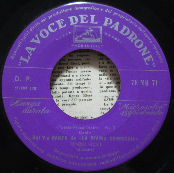 | B1 | Dal V.o Canto De "La Divina Commedia" Dante lighieri |