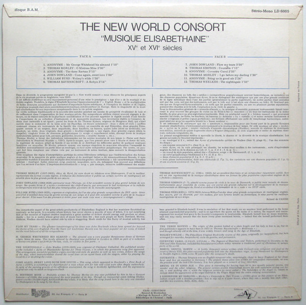 The New World Consort Of Wesleyan University – “Musique Elisabéthaine” XVe Et XVIe Siècles