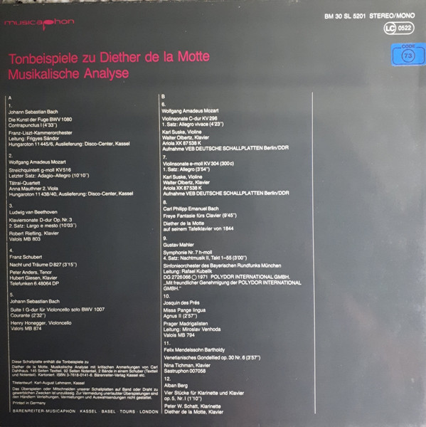 Various – Tonbeispiele Zu Diether De La Motte - Musikalische Analyse