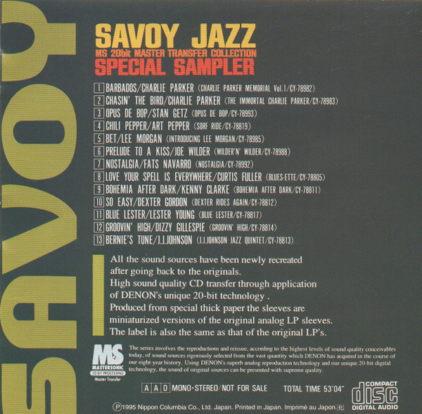Various – Savoy Jazz - 20 Bit Master Transfer Collection - Special Sampler