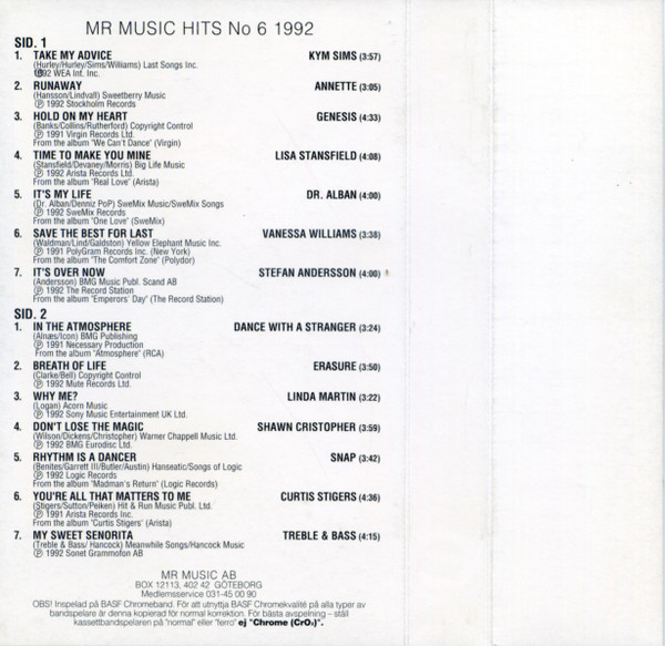 Various – Mr Music Hits No 6 - 1992